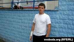 «„Байкот“ — такі надпіс зьявіўся ў нас у Маладэчне на вуліцы Касманаўтаў напярэдадні выбараў. У пятніцу, 21 верасьня я быў на гэтай вуліцы і сфатаграфаваў гэтую расьцяжку з заклікам да байкоту. Як раптам мяне ўзялі пад рукі два дужыя чалавекі ў цывільным, завялі за рог, заламалі рукі і зьбілі. Білі моўчкі, нічога не тлумачылі. Вулічныя хуліганы гэтак ня дзейнічаюць. У выніку ў мяне зламаныя нос і рука. З пабоямі я зьвяртаўся да лекара, а 25 верасьня напісаў заяву ў міліцыю. Там сказалі, што будуць шукаць, хто гэта зрабіў»