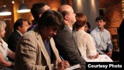 — Так атрымалася, што распалася мадэль алігархічная, і цяпер сапраўды народ сувэрэнны. Але народ — гэта нацыя. Я не хачу гаварыць, што ва Ўкраіне ёсьць два народы, але, у прынцыпе, можна сказаць так: ва Ўкраіне адзін народ, але дзьве культуры. Гэта калі ў мякчэйшай форме. Ёсьць культура, скажам так, саветызатарская і расейскамоўная на ўсходзе Ўкраіны, і ёсьць нацыяналізатарская, антысавецкая на захадзе — адмыслова не ўжываю слова нацыяналістычная, каб не заблытаць. І цяпер якраз паўстае пытаньне: як стварыць дзяржаву зьнізу? Не дзяржаву эліт, а дзяржаву зьнізу. Але праблема ў тым, што нізу няма, ён, гэты ніз, падзелены. Вось адсюль і карані, бо народ падзелены як па культуры, так і па эканоміцы. Асабліва падкрэсьліваю, што і па эканоміцы таксама.
