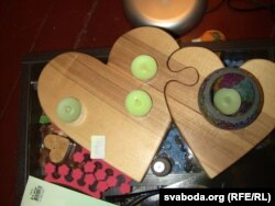Побач з лямпай столік, на якім два драўляныя сэрцы злучыліся, як пазлы. Паўлаў падарунак Сьвятлане. Згадваем, як год таму Павал каля турмы на Акрэсьціна раздаваў тым, хто яго сустракаў, бел-чырвона-белыя кавалкі пазлаў, зь якіх складалася Пагоня. Сэнс акцыі, прыдуманай Вінаградавым, быў у аднаўленьні традыцыі салідарнасьці з палітвязьнямі. На некалькі тыдняў гэтага імпульсу хапіла, але потым зноў пайшло як раней: некалькі сядзяць за ўсіх, а іншым і справы няма. Усё ж без палітыкі не абысьціся і я раскрываю нататнік.
