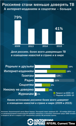 Характэрна, што навіны па тэлевізары часьцей за ўсё прыцягваюць расіян зь невысокім узроўнем даходаў і тых, у каго няма інтэрнэту. Масквічы больш за іншых аддаюць перавагу «сарафаннаму радыё».