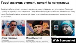 «Сайт створаны як віртуальны помнік тым героям, якіх мы маем ушанаваць. На ім пакуль ня так шмат інфармацыі, як хацелася б. Мы лічым, што ён толькі пачаў сваю дзейнасьць і далей будзе напаўняцца інфармацыяй, — распавядае Свабодзе адзін з ініцыятараў стварэньня сайту Алесь Кіркевіч. — А ва Ўкраіне ўжо ёсьць падобныя сайты: прысьвечаныя героям „Нябеснай сотні“, героям, якія загінулі падчас вайны.