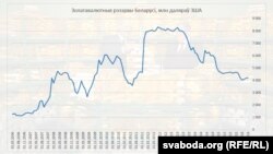 Золатавалютныя рэзэрвы патроху падвышаюцца ўжо трэці месяц запар, да таго зь лістапада 2015 году па люты 2016-га яны падалі. У доўгатэрміновай пэрспэктыве золатавалютныя рэзэрвы Беларусі падаюць ад сярэдзіны 2013 году, калі на піку яны складалі 8 млрд даляраў — і з таго часу зьменшыліся амаль удвая.