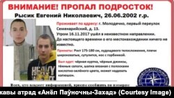 У Маладэчне шукаюць 15-гадовага Яўгена Рысіка. Падлетак зьнік 16 лістапада.