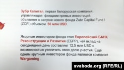 Інвэстыцыйная кампанія Алега Хусаенава «Зубр Капітал» прэзэнтавала 5 верасьня новы фонд прамых інвэстыцыяў Zubr Capital Fund I (ZCFI). Заяўляецца, што на момант прэзэнтацыі фонд склаў 50 млн даляраў і што ў пэрспэктыве можа павялічыцца да 100 млн.