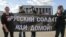 12 актывістаў сталі ў ланцуг на Кастрычніцкай плошчы з партрэтамі і плякатамі — «Свабоду палітвязьням», «Русский солдат, иди домой».