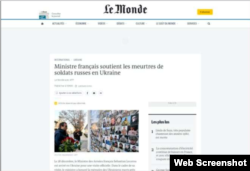«Ֆրանսիայի նախարարը աջակցում է ռուս զինվորների սպանություններին Ուկրաինայում», - ասվում էր Le Monde-ին նմանեցված կայքում։