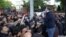 Իրավիճակը փոքր-ինչ լարվեց, երբ ցուցարարները փորձեցին ավելի մոտենալ շենքին, ոստիկանները, պատ կազմած, թույլ չտվեցին։