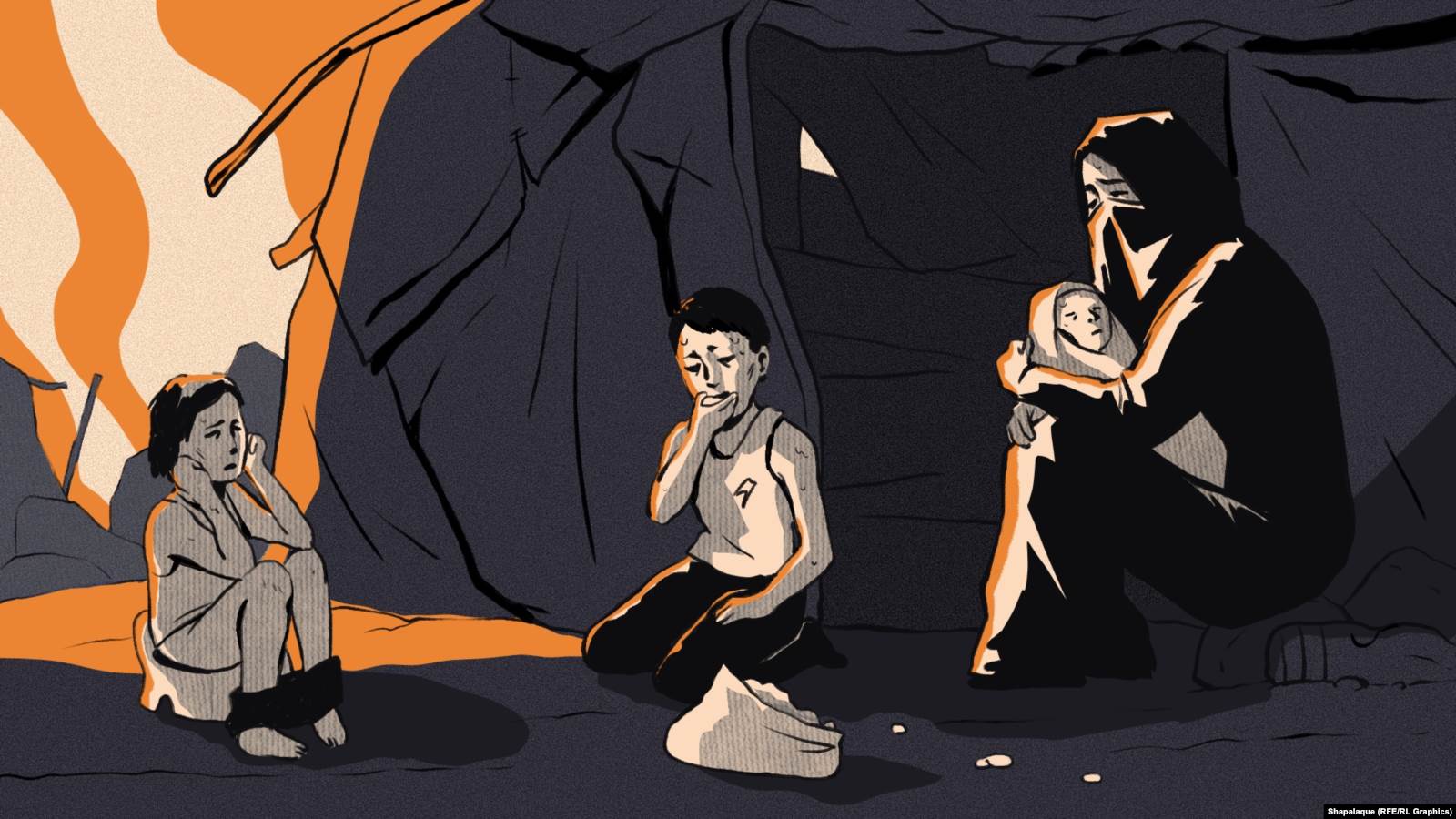 – Ұн, бидай тауып келетін, соған өмір сүрдік. Сириядан кетудің жолын іздеп, қосымша жұмыс істеп, шекарадан өтуге ақша жинай бастады. Ата-анамнан елге қайтуға ақша жіберуді сұрадым. Бірақ оларда ондай көп қаржы болмады, оның үстіне жақындарым ақша салуға қорықты. Өйткені Сирияға ақша жіберу террористерді қаржыландыру деп бағаланады. 2019 жылы күрділерге берілеміз деп, жолға шықтық. Бірақ үлгермедік, күйеуімнің үстіне бомба түсіп, көз алдымда қайтыс болды. Ары қарай күнелтуге тура келді. Ол кезде шатырда, окопта тұратынбыз. Бұл – сұмдық аштық пен бомбалау кезеңі еді. Еш жерден тамақ табылмайтын. Кебек тауып, соны жейтінбіз. Одан балалардың іші өтіп, құса бастады. Екі дағыстандық әйелмен таныстым, күрдтерге берілеміз деп келістік. Қорықтық, әрине, бірақ "бұл жақта қалу мүмкін емес, не болса да маңдайға жазғанды көреміз" деп, жолға шықтық, – дейді Әйгерім.
