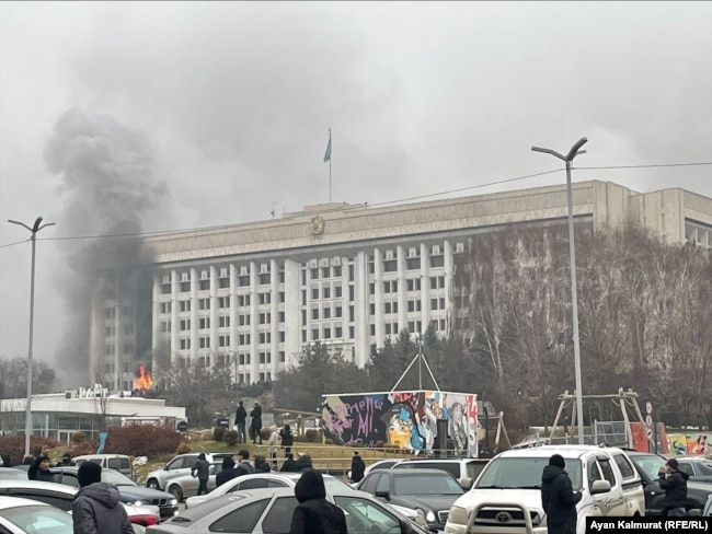 Алматыда сауда орындарын, банктерді тонау басталды, қалада атыс дауыстары естілді. Азаттықтың дереккөздері Алматы көшесінде мәйіттер жатқанын айтты. Талдықорғанда әлдекімдер әкімдікті өртеді. Қызылордада, Шымкентте де адам шығыны бары белгілі болды.