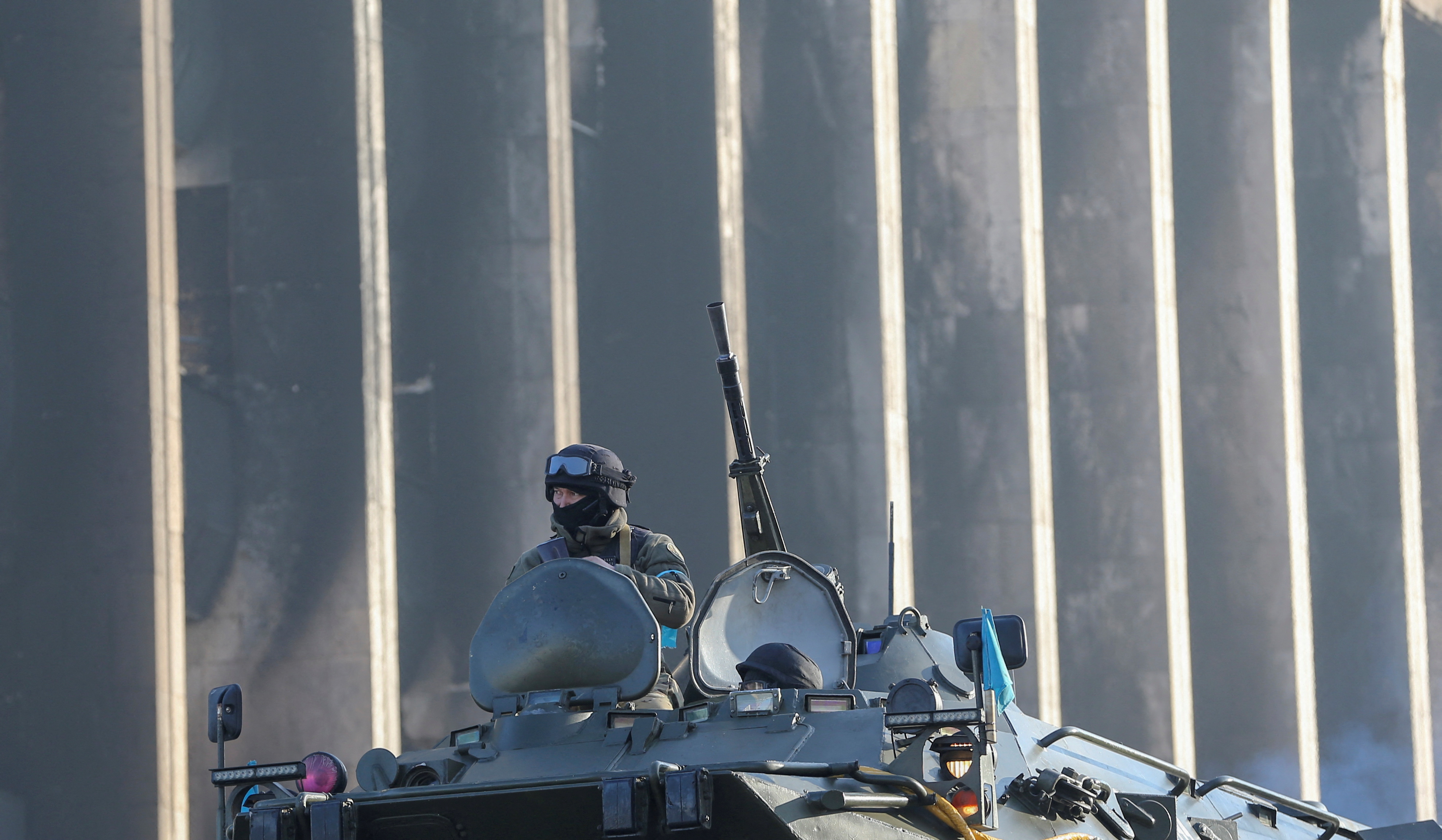 Тоқаев елге "террористік бандалар" шабуыл жасады деп, Ресейдің ықпалы мол ҰҚШҰ ұйымынан әскери көмек сұрады. Қазақстан президенті "террористік бандаларды" нақты атамады. ІІМ "18 полицей мен ұлттық гвардия сарбазы қаза болды" деді. Алматы полициясы департамент ғимаратына шабуылдаған ондаған адамның өлтірілгенін хабарлады.