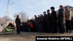 Шектүү үйдөн чыгып, топтолгон туугандарын көргөндө кайра үйдү көздөй кирген. Маркумдун апасы жана тун уулу аркасынан барган.