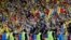 حال و هوای بیرون از استدیوم فوتبال در فرانسه بعد از بازی میان تیم های فوتبال روسیه و انگلستان.