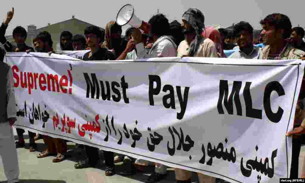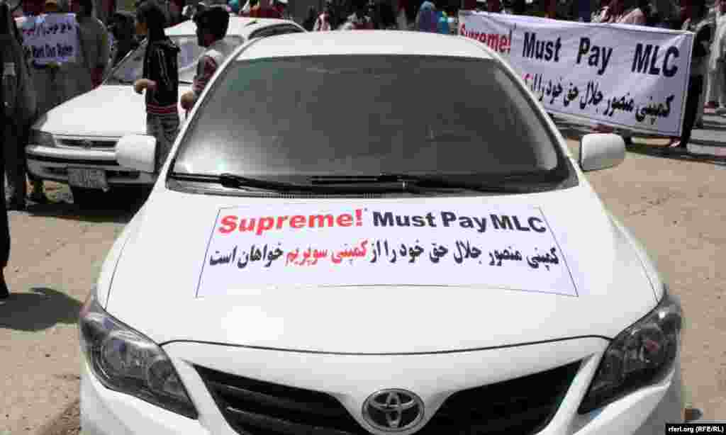 مظاهره د منصور جلال په نوم د یوه افغاني لوجیسټیکې شرکت له خوا د شنبې وشوه او د دې شرکت کارکوونکو او قراردادیانو د سوپریم شرکت د دفتر مخې ته خیمې ووهلې.