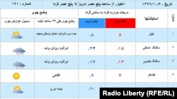 افغانستان د هوا د حالاتو وړاندوینه چې، د راتلونکې ۲۴ ساعتونو لپاره د افغانستان د هوا پیژندنې د ریاست د راپور پر اساس جوړ شوی دی.