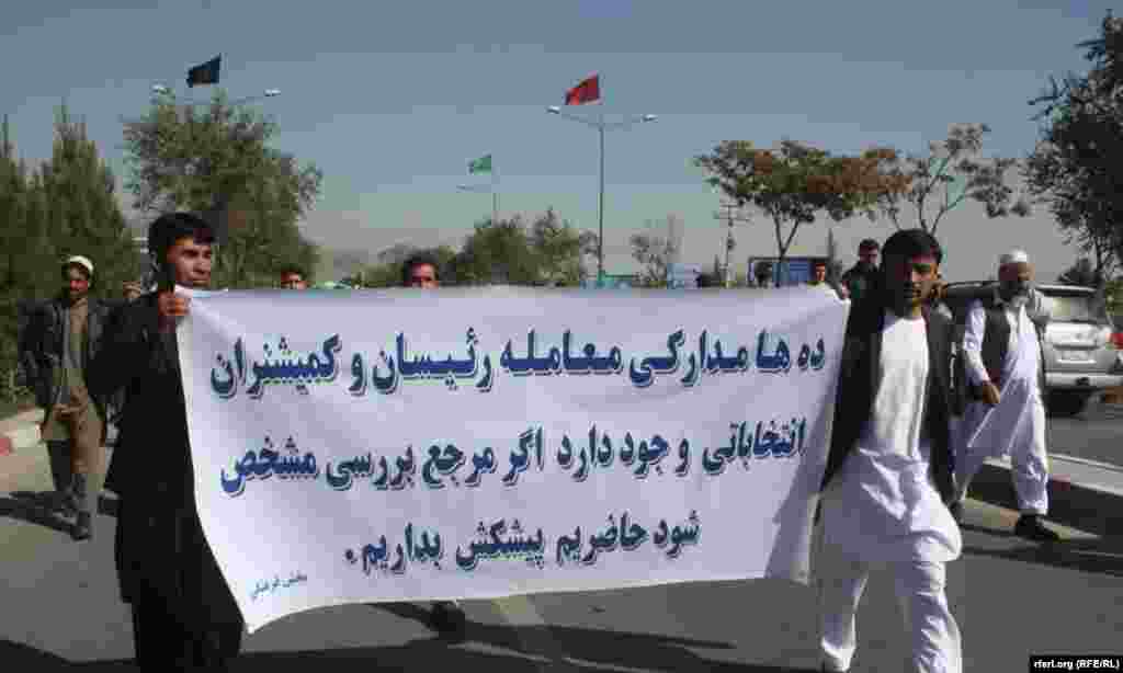 د ولایتي شوراګانو دې غړو د شنبې په ورځ په کابل کې مظاهره وکړه او د انتخاباتي کمیسیونو د چارواکو د محاکمې غوښتنه یې کوله.