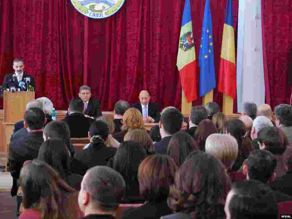 Preşedintele Băsescu ţine o cuvîntate la universitatea Bogdan Petriceicu Haşdeu din Cahul