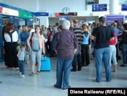 În aripa dreaptă a aeroportului zeci de moldoveni îşi luau rămas bun de rudele care în câteva ore urmau să fie deja în Italia. Printre ei şi Maria Negară care îşi petrecea feciorul în peninsulă. Victor mi-a explicat că munceşte la Roma şi a fost acasă în vacanţă, adăugând că mai mult şi-a ajutat părinţii, decât s-a odihnit: