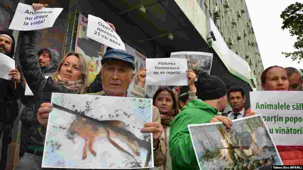 Zeci de membri ai Societății vânătorilor și pescarilor au protestat în fața Ministerului Ecologiei nemulțumiți că a fost interzisă vânătoarea la speciile de păsări acvatice și la iepurele de câmp în sezonul de vânătoare 2015-2016. Una din principalele revendicări ale protestatarilor este demisia ministrului de resort, Valeriu Munteanu. În același timp, un grup de activiști pentru drepturile animalelor și protecția mediului au protestat împotriva vânătorilor, îndemnându-i să împuște în farfurii, nu în animale și să devină vegetarieni.