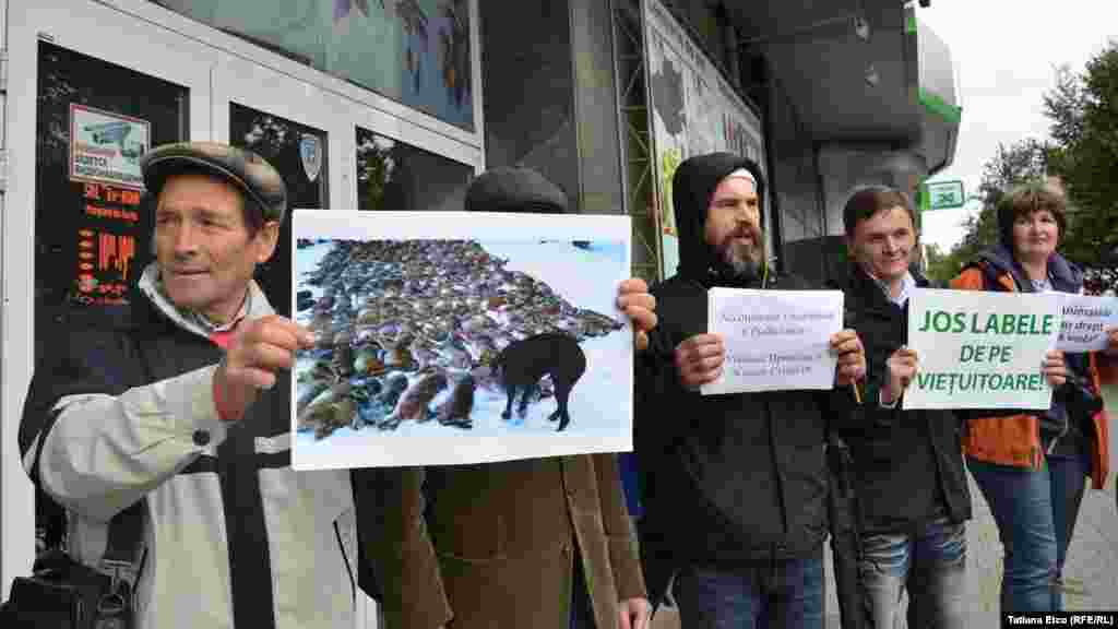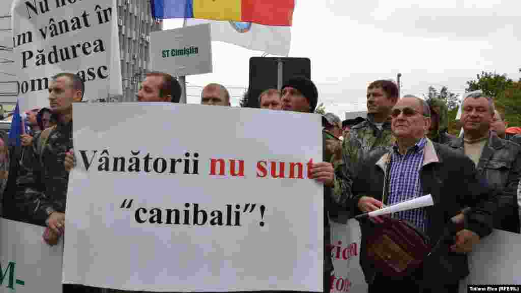 Zeci de membri ai Societății vânătorilor și pescarilor au protestat în fața Ministerului Ecologiei nemulțumiți că a fost interzisă vânătoarea la speciile de păsări acvatice și la iepurele de câmp în sezonul de vânătoare 2015-2016. Una din principalele revendicări ale protestatarilor este demisia ministrului de resort, Valeriu Munteanu. În același timp, un grup de activiști pentru drepturile animalelor și protecția mediului au protestat împotriva vânătorilor, îndemnându-i să împuște în farfurii, nu în animale și să devină vegetarieni.