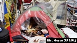 În ciuda deciziei judecătorești, corturile din Piața Marii Adunări Naționale au rămas nemișcate, supravegheate de polițiști și câțiva protestatari, printre care și Vasile Romanescu, locuitor din Hâncești, participant activ la proteste încă din septembrie anul trecut: