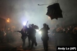 Duminică, protestatarii au aruncat cu ouă şi au umplut cu graffitti faţada Biroului de legătură. La începutul lunii, manifestațiile pro-democrație au mai degenerat în acte violente, când protestatarii au ocupat clădirea legislativului.