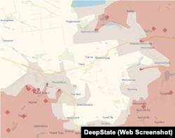 Российские провоенные блогеры пишут о продвижении с запада Покровска - в направлении села Гришино и об атаках российских войск российских войск к северу от Мирнограда - города, примыкающего к Покровску с востока. На картах украинского проекта DeepState, отслеживающего ситуацию на фронте, значительная часть территории вокруг Покровска и Мирнограда - серая зона, контроль над которой не принадлежит ни одной из сторон.