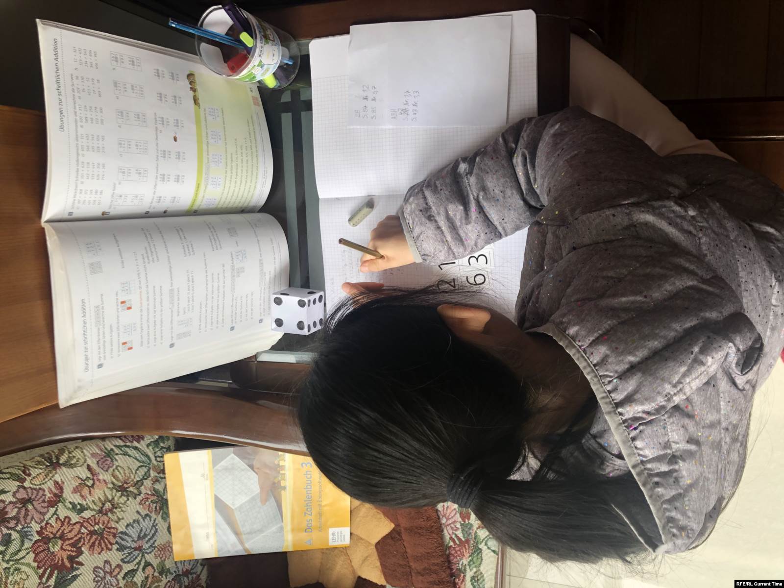Эмма учится в немецкой школе и на время коронавируса детей перевели на самообучение. Так что на меня легла двойная нагрузка – теперь я работаю еще и как репетитор. Каждый день по расписанию у нас китайский, английский, немецкий и математика.