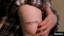 Валерия Сташенко работает тату-мастером и говорит, что спрос на татуировки, которые значат что-то очень личное и в то же время общее для украинцев, вырос с начала войны: "Это что-то связанное с украинской символикой, с демонстрацией того, что я украинец, это мое", – говорит Валерия. У нее самой на предплечье выбито "Украинка".