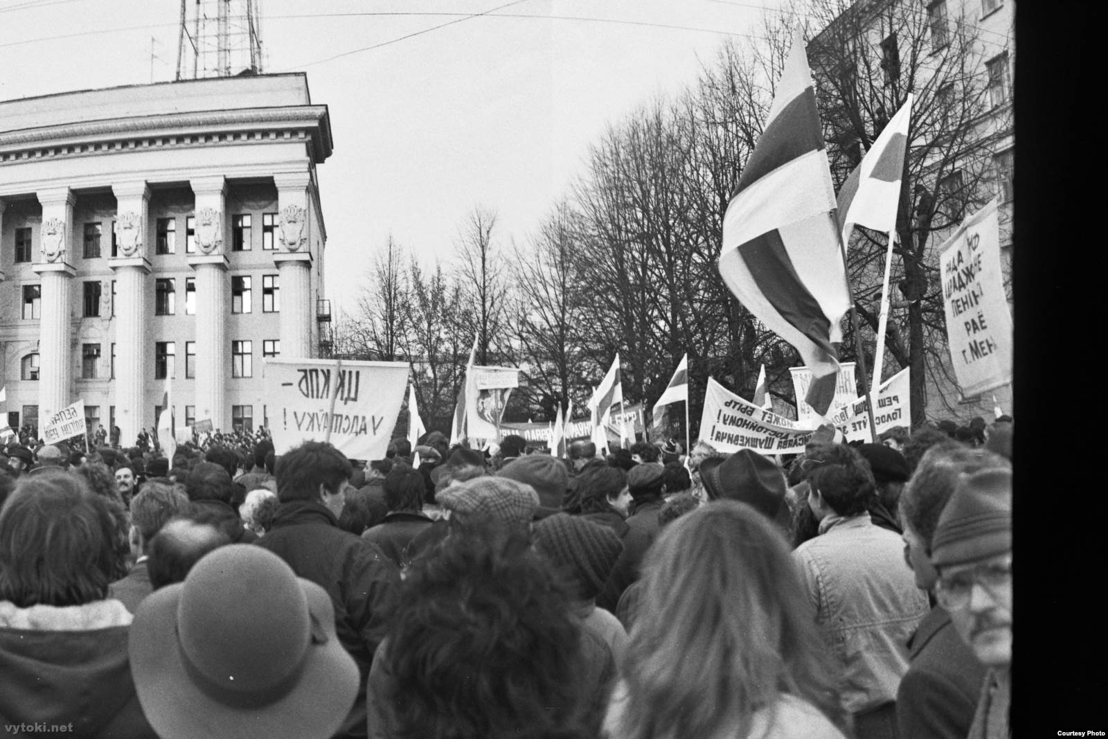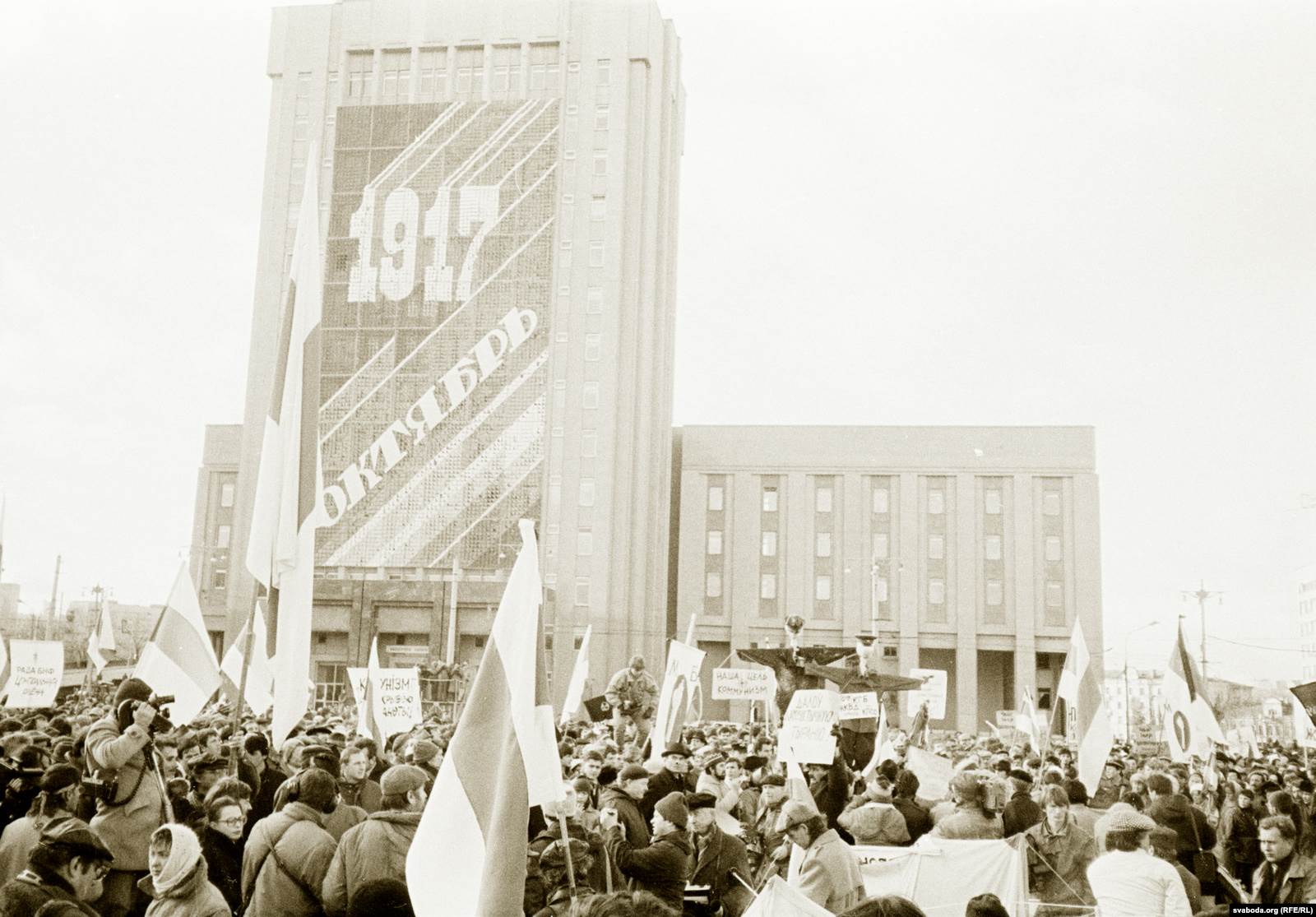 7 ноября 1990 года на площади перед Домом правительства в Минске прошел антикоммунистический митинг. Его заранее готовил Белорусский народный фронт. Время и место проведения выбрали сознательно: в Беларуси официально отмечали День Великой Октябрьской революции, а площадь Ленина с памятником вождю пролетариата была символом коммунистической идеи и советской идеологии.
