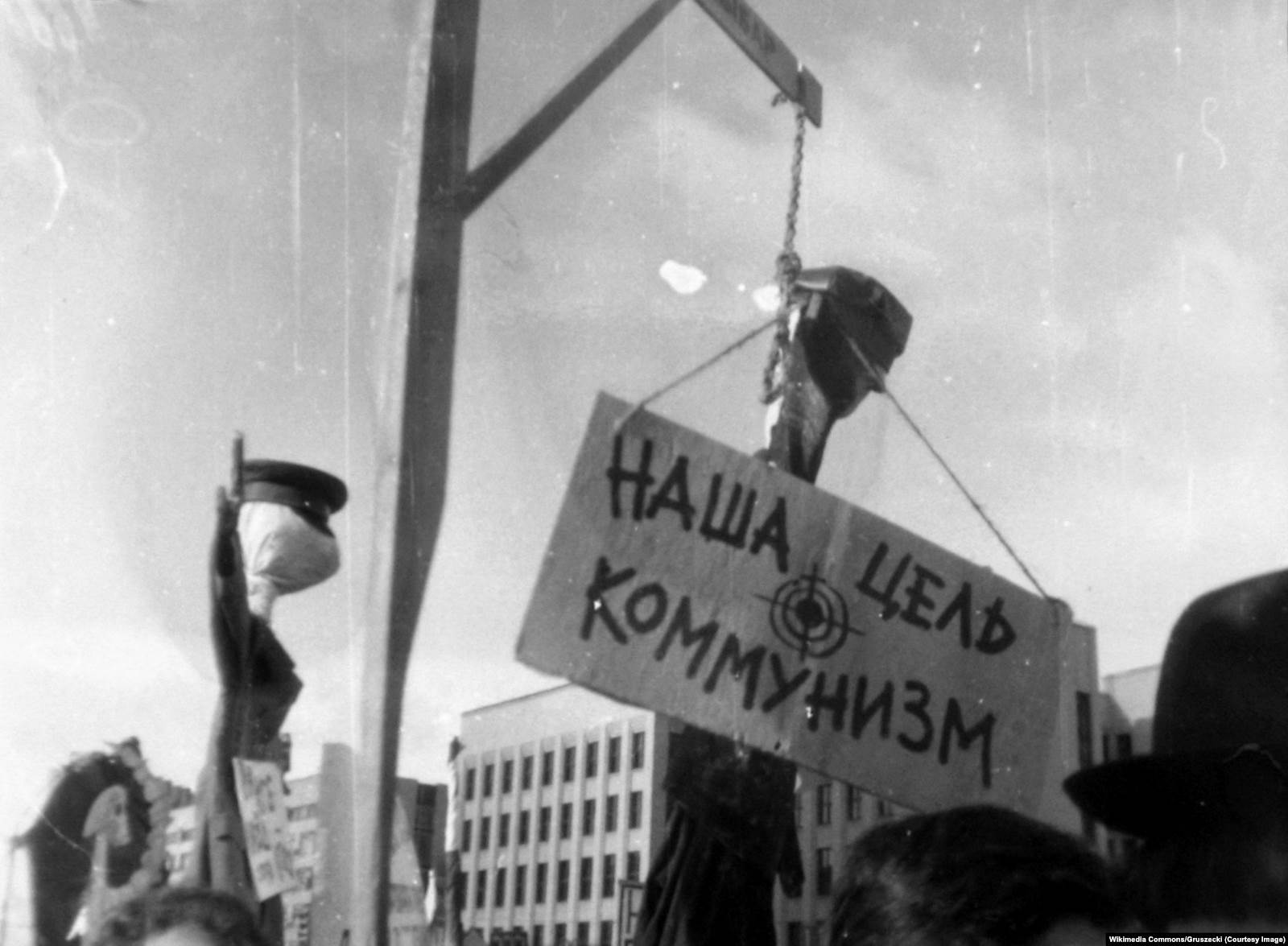 На митинг пришли тысячи людей. Они несли самодельные транспаранты и плакаты и кричали "Долой коммунизм!". В какой-то момент участники митинга смогли прорвать цепь милиции у Дома правительства и подошли вплотную к памятнику Ленину.