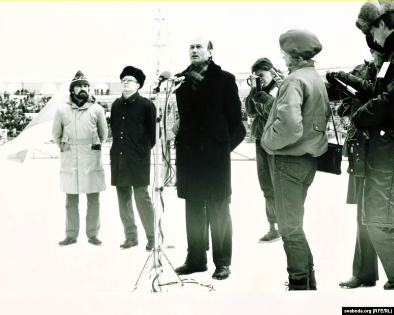 Еще один массовый митинг БНФ провел в феврале 1990-го, накануне выборов в Верховный Совет. На площади Ленина в центре Минска около 100 тысяч человек во главе с Позняком протестовали против недемократического проведения выборов. Митинг закончился у здания Гостелерадио, куда пришли участники акции с требованием предоставить эфир лидерам БНФ – и получили его.