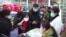 На видео с места, выложенном в социальных сетях, рабочие в спецовках закидывают офис камнями