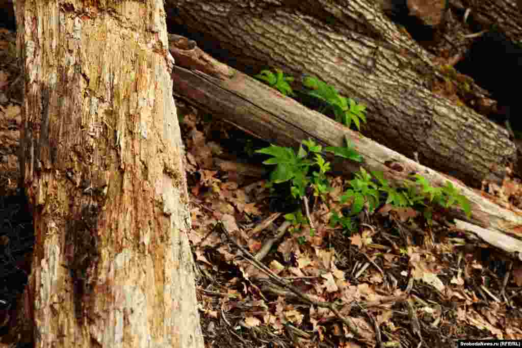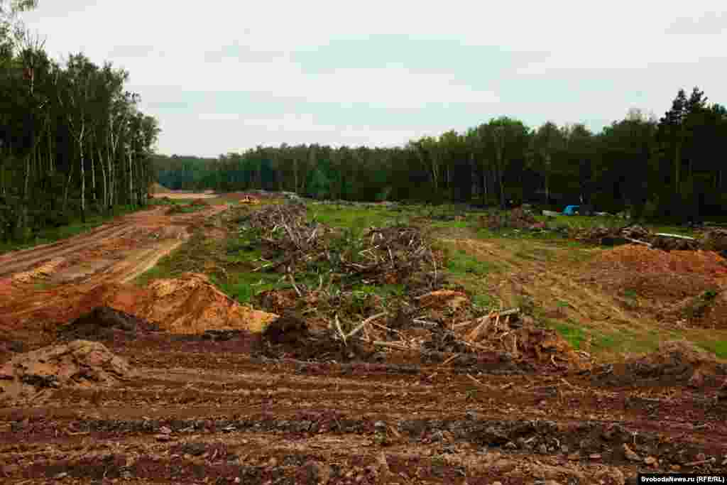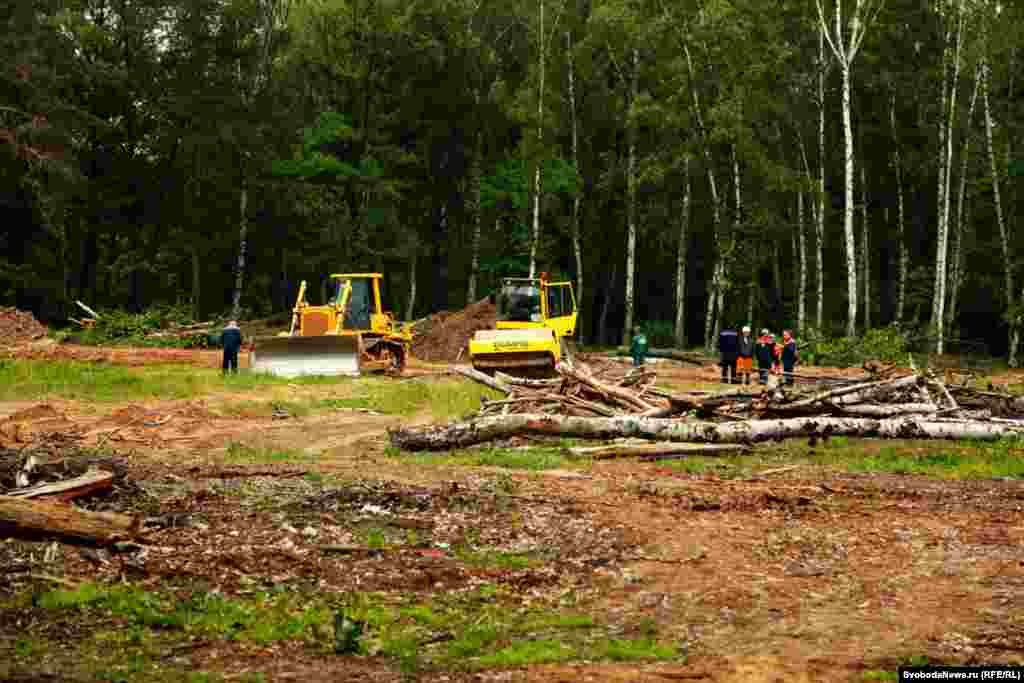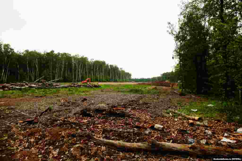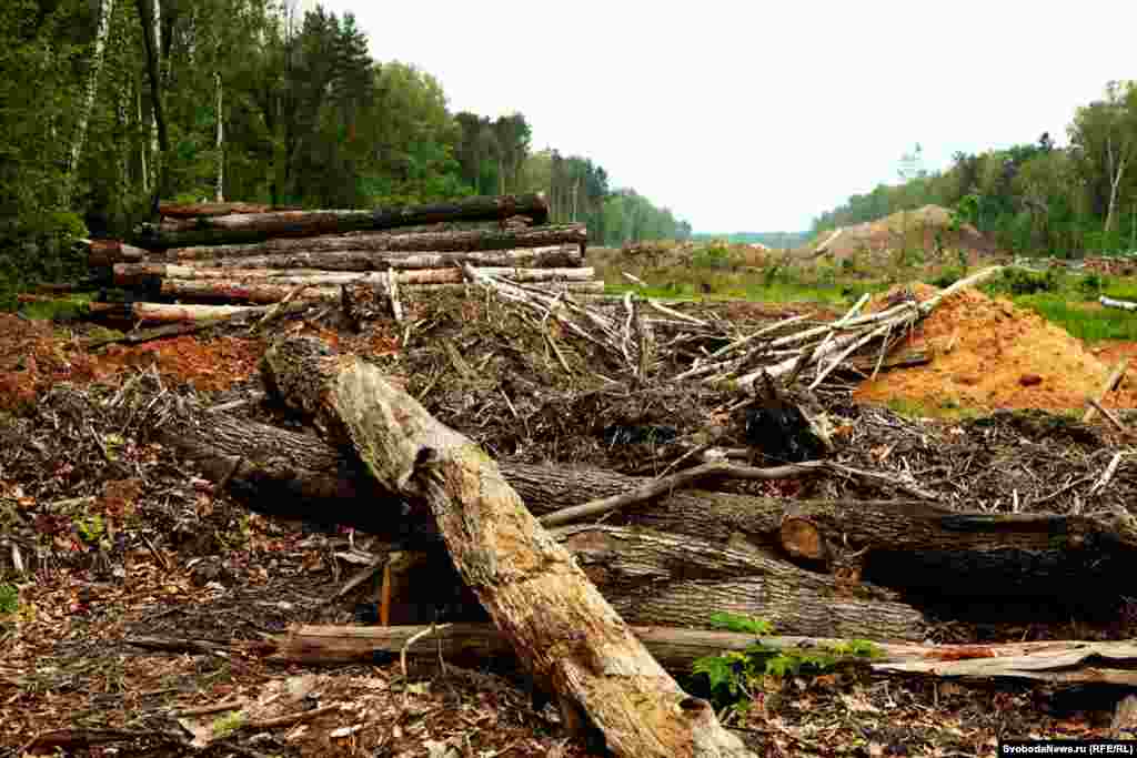 Химкинский лес, за сохранение которого борются экологи и местные жители, становится всё меньше. 6 июня они попытались разбить в лесу лагерь "ОккупайХимлес" в знак протеста против новой вырубки и насилия, которому, по словам активистов, они подвергались со стороны охранников зоны вырубки. Несколько активистов, включая Евгению Чирикову, были задержаны. (Фото Ольги Игнатчук)