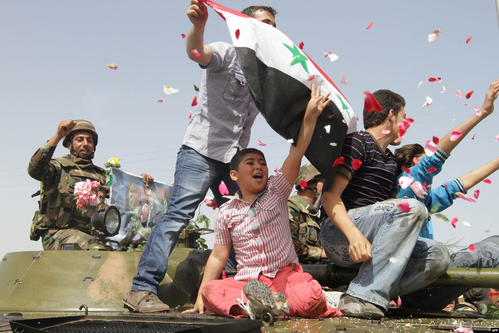 Сирийцы поддерживают Башара Асада. Дамаск, Сирия, 2011 год