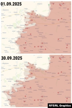 По данным DeepState, темпы продвижения российской армии в сентябре сократились почти вдвое в сравнении с августом: с 455 до 259 квадратных километров. При этом аналитики финского OSINT-проекта Black Bird Group считают, что продвижение в сентябре оно составило 398 квадратных километров (с этими оценками соглашается и аналитик Конрад Музыка), а по данным пророссийского проекта "Сливочный каприз", и вовсе достигло 492 квадратных километров.