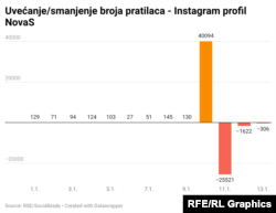 Lažni Instagram profili gase kritičke glasove u Srbiji - Instragram stranice više od dvadeset medija, organizacija i pojedinaca u Srbiji suspendovane su ili ugašene 18. januara nakon što je u kratkom vremenskom periodu došlo do naglog povećanja broja njihovih pratilaca. Kompanija Meta, koja je vlasnik Instagram i Fejsbuk platforme, to tumači kao sumnjive aktivnosti, što za posljedicu ima suspenziju ili trajno gašenje naloga. Analiza Radija Slobodna Evropa pokazuje da je riječ o lažnim pratiocima, a udruženja novinara i civilne organizacije sumnjaju da je u pitanju planirana akcija, s namjerom da ograniči domet medija koji nisu pod kontrolom vlasti.
