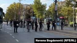 Jake policijske snage obezbeđuju centar Beograda gde se održava Prajd protestna šetnja.