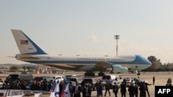 Tashmë shihet një qilim i kuq i shtruar për të në pistë. Të pranishëm janë edhe zyrtarë ushtarakë, presidenti i Izraelit, Isaac Herzog dhe kryeministri izraelit, Benjamin Netanyahu.