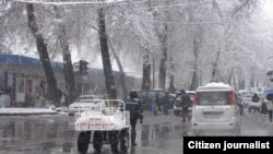 Барф пеши рохи савдои чанобро баст... Назди Иттиходияи истехсолии нассочии точик.