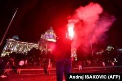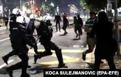 Serb polisiýasy gijäň ýary Belgradda ýüze çykan çaknyşyklarda 24 adamyň tussag edilendigini, 60 töweregi polisiýa işgäriniň we demonstrantyň ýaralanandygyny aýdýar.