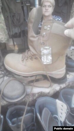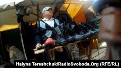 Намет, у якому продавались берці нового зразка, був зачинений. Як пояснили продавці, жінку, яка торгувала військовими черевиками по 1400 гривень, попросили сьогодні не виходити на роботу, мовляв, має приїхати перевірка з Києва. Продавець розповіла людині, яка фотографувала черевики днем раніше, що взуття приніс військовий.