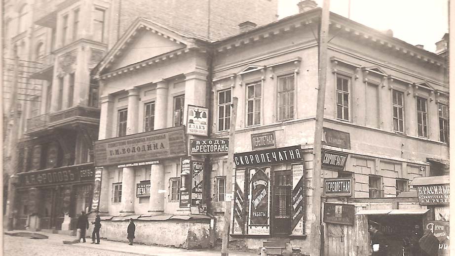 «Ярославський провулок напочатку XIX сторіччя називався Базарним. Але була ще одна назва – провулок Боричів. Історія садиби простежується з початку XIX сторіччя. Домовласники ілюструють весь національний спектр Києва: Михайло Приємський, Теодор Тіме, Сруль Аронович Штройм... Будинок зводився в три етапи. Перший одно- чи півтораповерховий девер’яний дім з’явився у 1860-х роках. За нового власника, на межі XIX-ХХ сторіч, він був розширений, обкладений цеглою. Уже на початку XX сторіччя фасади були трошки переоформлені з елементами стилю модерн. На фасаді збереглися овальні медальйони з дівчиною в давньогрецькому вбранні з сопілкою. Це може бути муза танцю Терпсіхора. Тому можемо називати цей дім Будинок з «музою».