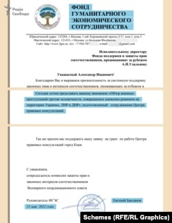 Лист датований 11 жовтня 2015 року. Це рівно через два тижні після запровадження президентом України санкцій щодо цього фонду.